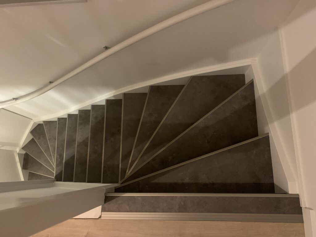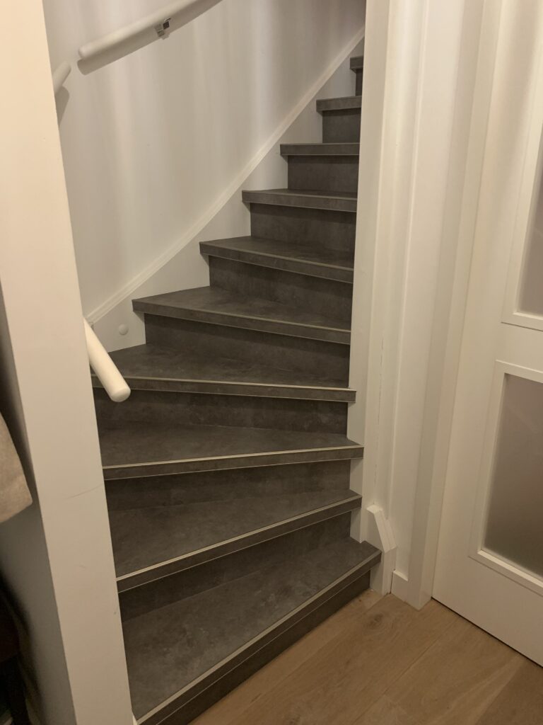 Trapbekleding betonlook met rvs profielen